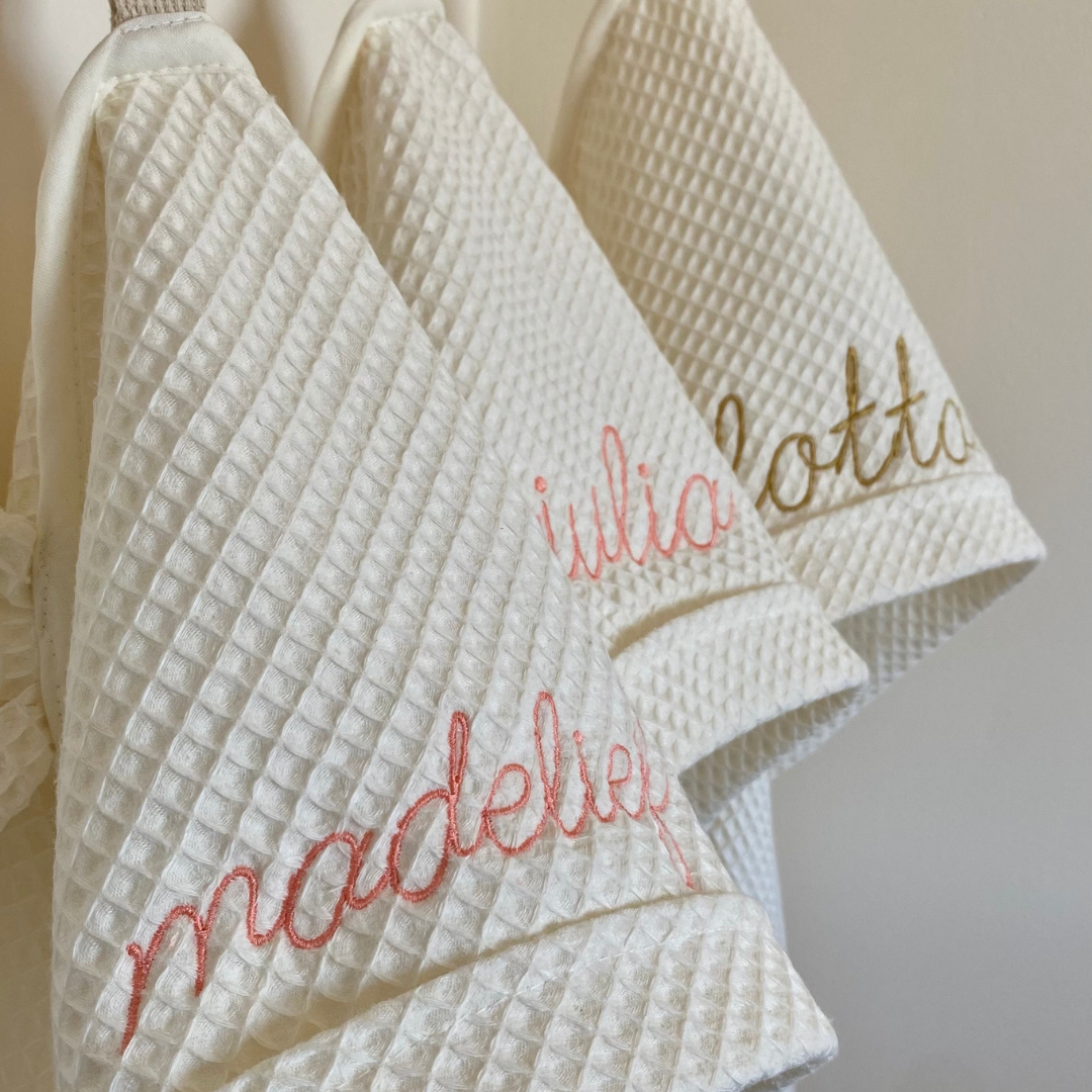 Wij personaliseren elke badcape met liefde in ons atelier. Je bestelling wordt binnen 9 werkdagen verzonden. Alle producten worden mooi ingepakt en zonder prijskaartje geleverd – direct klaar om cadeau te geven.